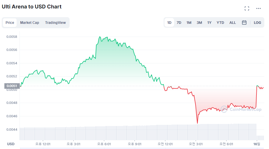 Ulti Arena에서 발행하는 ULTI coin이라고, 프리세일 때 0.0001 달러에 주고 648달러에 구입했었다.